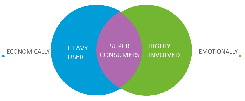 From the good people at Nielsen & The Cambridge Group comes this new definition of “Super Consumers”. They are a rare breed living at the cross section between highly engaged, in the economic sense (heavy users / buyers of a product) and the highly involved, in the emotional sense (active & engaged with the product).